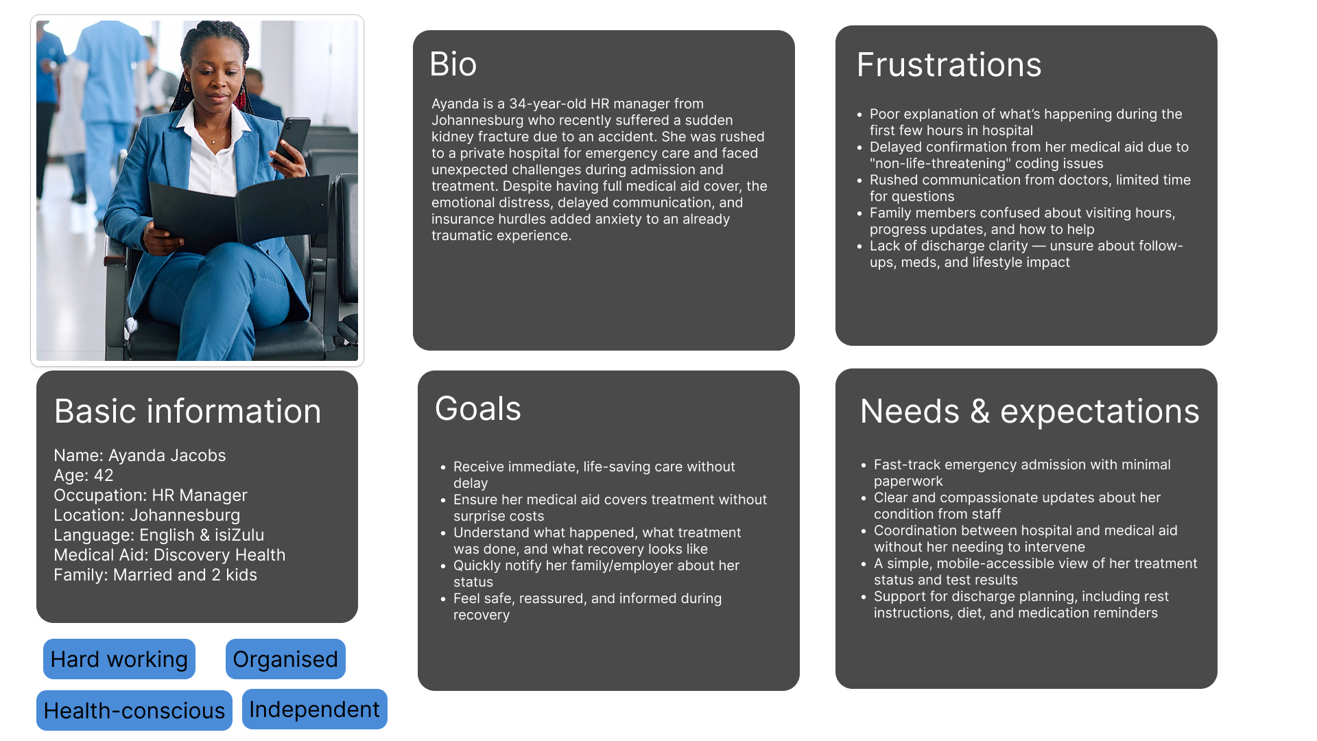 HospiJourney is a patient journey app that aims to guide the user through their hospital journey and provide them with information that will help them to understand what is going on at each step of the journey.